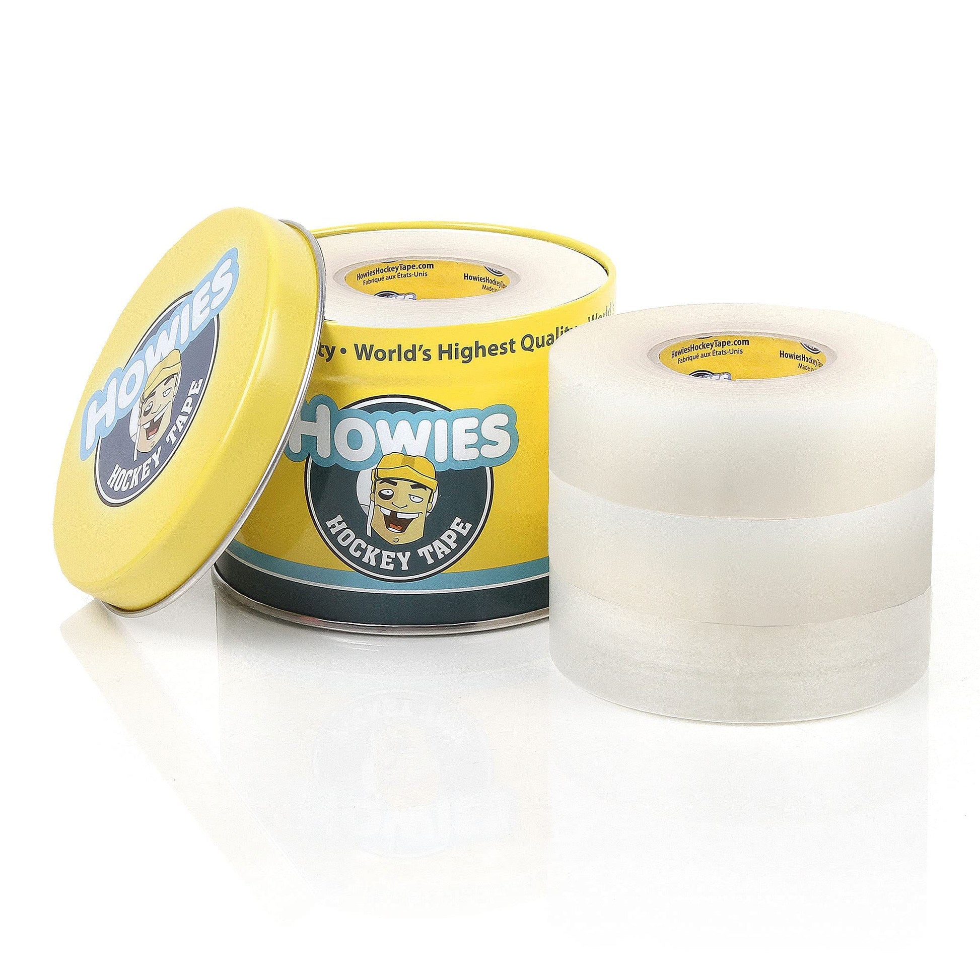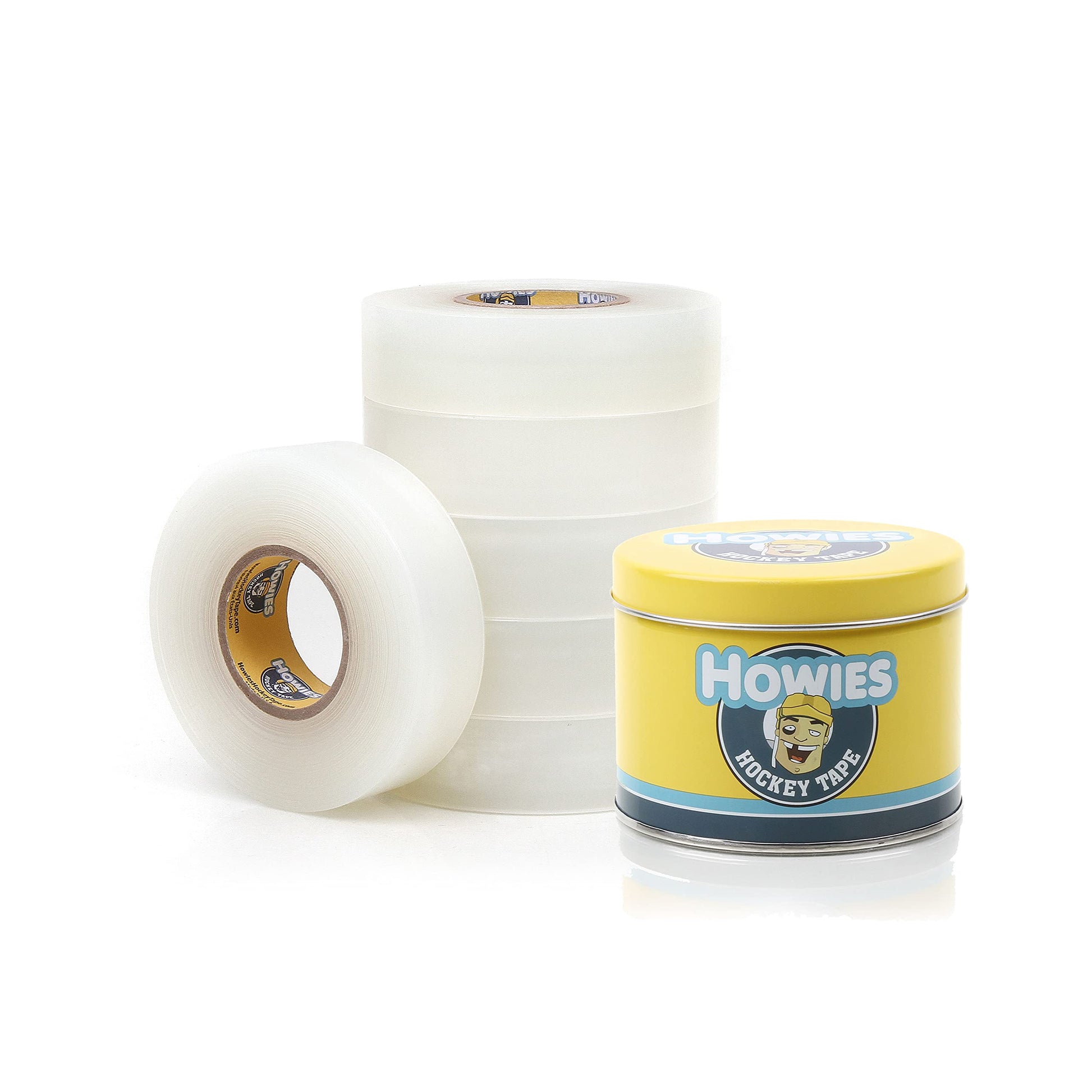Howies Hockey Tape 6 Roll Pack - Cloth (1 Inch by 25 Yards Long) Clear/Poly (1" x 30yds) Free Tape TIN(Choose Your Colors) White, Black, Clear Shin Pad Sock Tape (6 Clear)