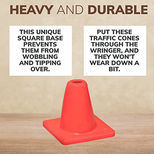 - WILL NOT FLY AWAY OR BLOW OVER: These 6-inch soccer cones come equipped with an ultra-sturdy base. So, when you set them down, they’ll stay in place even on the windiest of days.