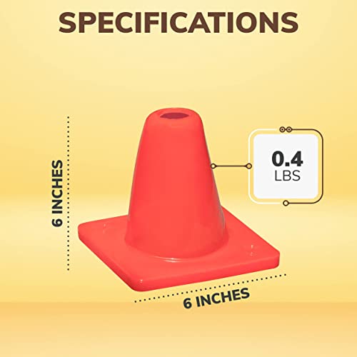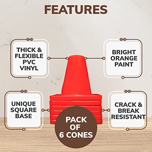 Koozam Sports 6 Pack Heavy Duty 6 Inch Sports Pro Training Cones - Won't Fly Away in Wind Or Crack for Football, Soccer, Parking, Construction, Safety & More